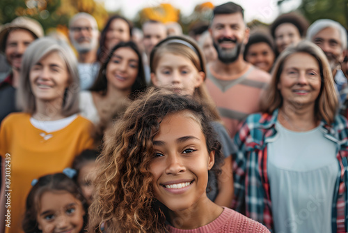 Large group of happiness people, variety of ages and nationalities, outdoor portrait
