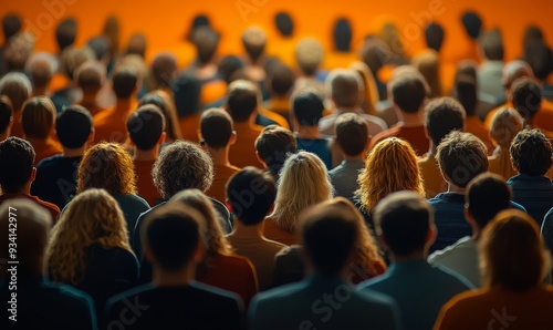 large group of people listening to a lecture or instructions, fictitious happening, Generative AI
