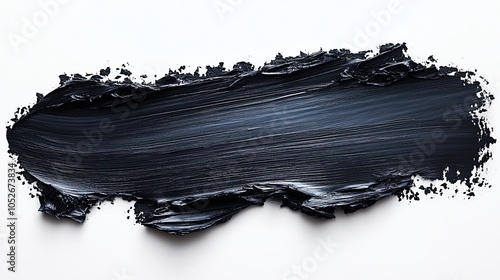 Large horizontal brush of black oil paint on white canvas. Textured surface and rich color create a sense of depth and volume.