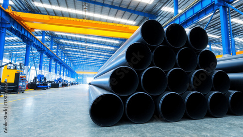 Large Industrial Steel Pipes Stacked in a Modern Manufacturing Facility
