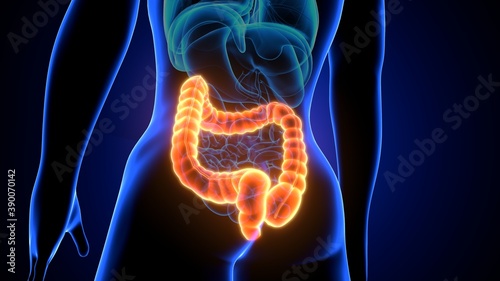 large intestine 3d illustration human digestive system