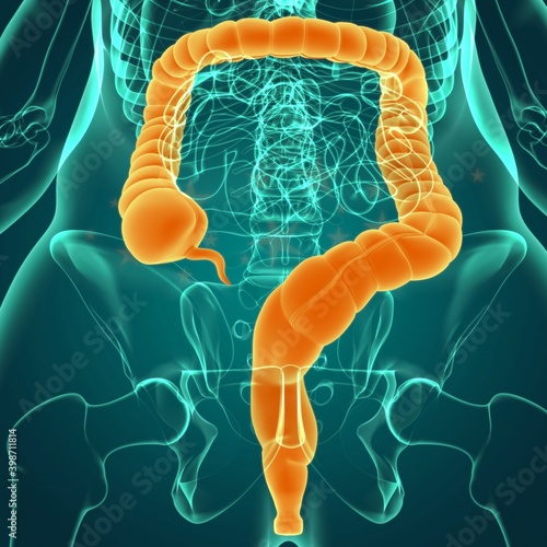 Large Intestine 3D Illustration Human Digestive System Anatomy