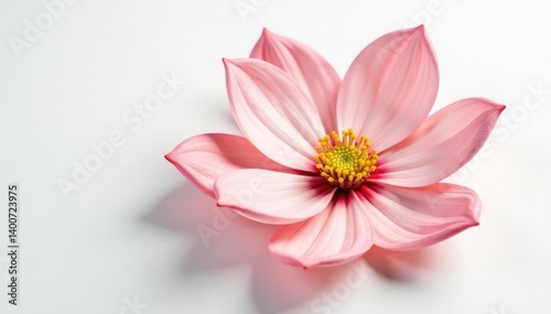 Large isolated flower with delicate petals on white surface, white background, large flowers, bloom