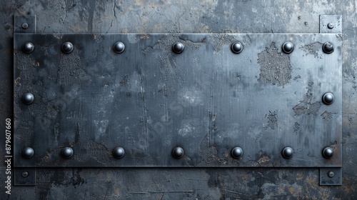 Large metal banner with a sleek gray background, ideal for industrial-themed projects and modern, minimalist designs.