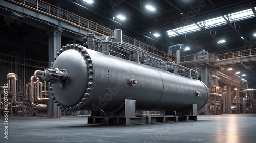 Large Metal Industrial Tank in Factory Interior Processing Equipment