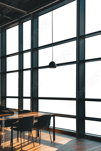 Large minimal clean window frame interior design. Transparent PNG background. Minimalist office with wide window. Clean, contemporary decor.