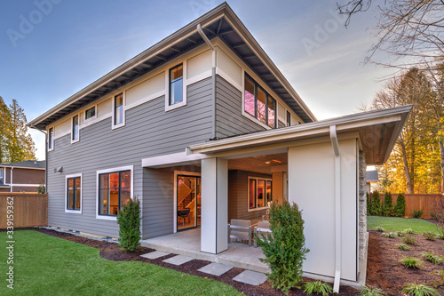 Large new modern home two story with fully fenced yard and back porch and yard.