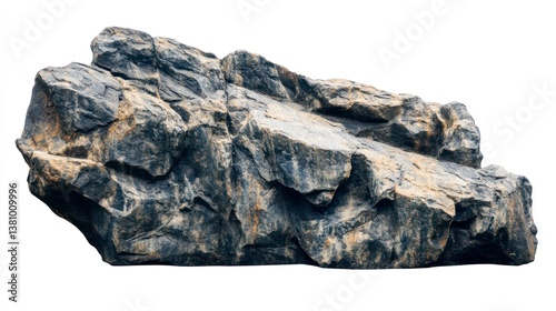 Large Rock Formation Isolated on White Background, Geological Feature Detail