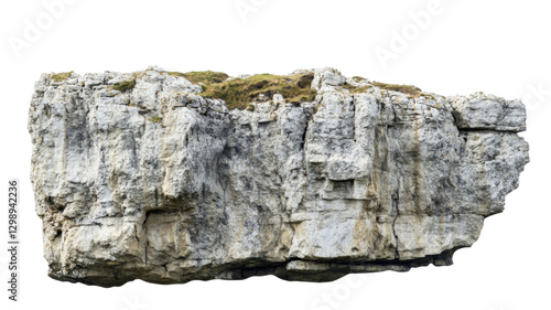 Large rocky cliff face with grass on top isolated on transparent background