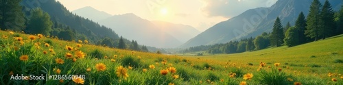 Large scale nature photography, calming landscape in a boardroom setting, office space, tranquil