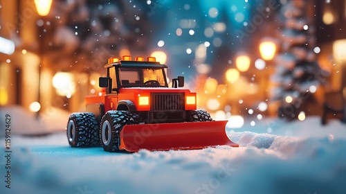 Large snowplow in action during heavy snowfall, creating a safe roadway, illustrated in a vibrant, dynamic art style