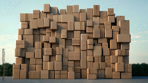 Large Stack Of Cardboard Boxes Outdoors