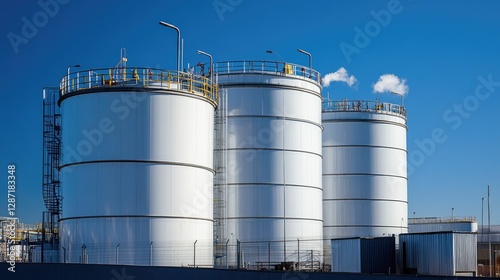 Large storage tanks containing chemical reagents for mineral extraction