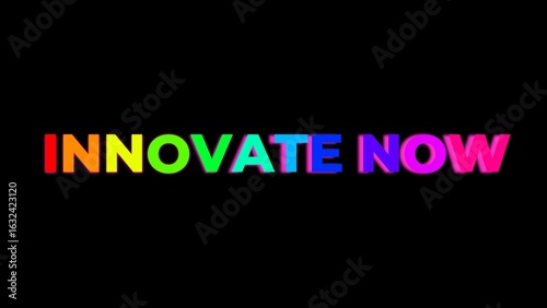 Large Text INNOVATE NOW with randomly colored letters with colors of the rainbow on black