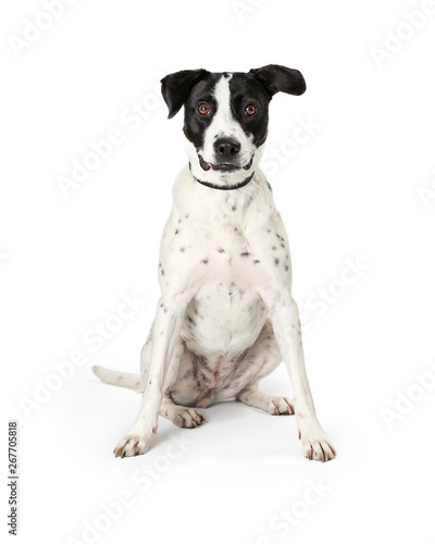 Large White Dog Black Spots Sitting Center