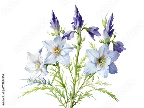 Larkspur Watercolor Flower Nature Art