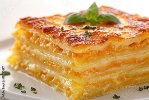 Lasagna fresh basil pasta sheets Delicious layered lasagna topped with fresh basil leaves.