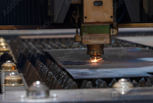 Laser cutting head for metal processing metal factory spark background, Processing and laser cutting for metal in the industrial