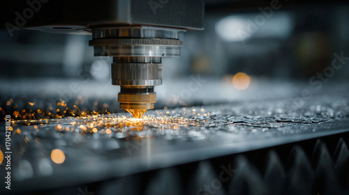 laser cutting machine sparks flying while processing metal sheets modern fabrication engineering craftsmanship industrial detail advanced technology process and automation workshop