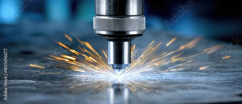 laser cutting metal concept. Laser cutting process creating sparks on metal surface in industrial setting.