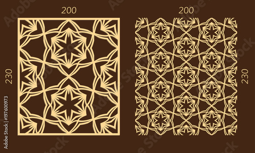Laser cutting set. Woodcut vector trellis panel. Plywood lasercut eastern design. Hexagonal seamless pattern for printing, engraving, paper cutting. Stencil lattice ornament.