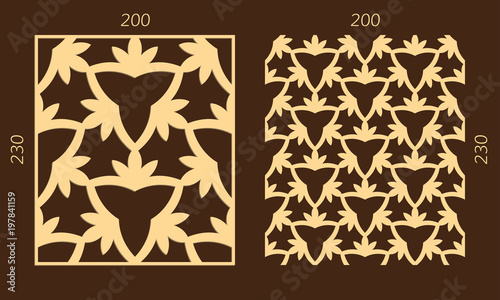 Laser cutting set. Woodcut vector trellis panel. Plywood lasercut eastern design. Hexagonal seamless pattern for printing, engraving, paper cutting. Stencil lattice ornament.
