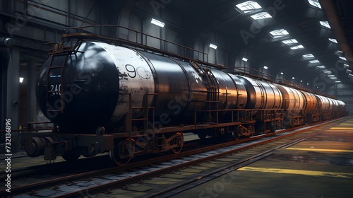 Last tank with oil petroleum of the cargo train. Railway fuel supply. Neural network AI generated art