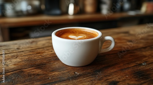 Latte art coffee cup cafe wood table background