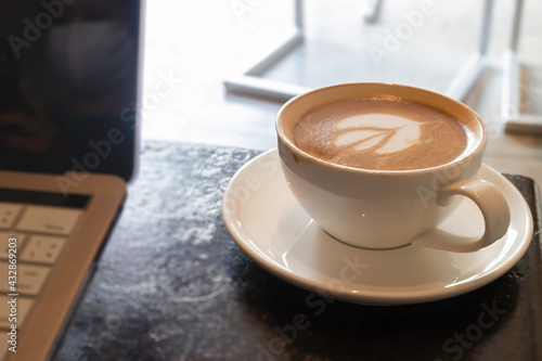 Latte art on hot milk coffee
