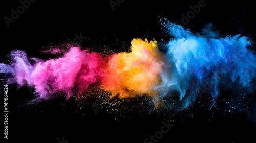 Launched colorful powder on black background