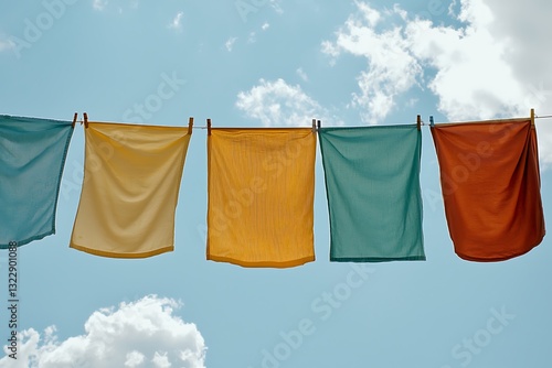 Laundry drying against sky backdrop