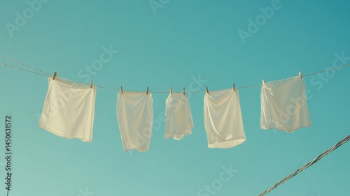 Laundry hanging on a clothesline under blue sky