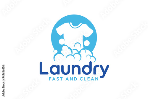 Laundry logo design template. Clothes illustration with detergent bubbles for laundry service logo