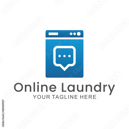 laundry logo in shades of blue and white, with bubbles for washing clothes, simple logo, creative logo