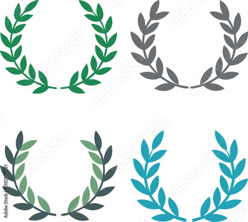 Laurel wreath set with seamless floral design and vector elements, symbolizing victory and nature, featuring leaves, branches, and olive patterns