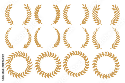 Laurel Wreath Vector Set – Black, Gold, Silver and Bronze Victory, Award and Champion Emblems Illustration.