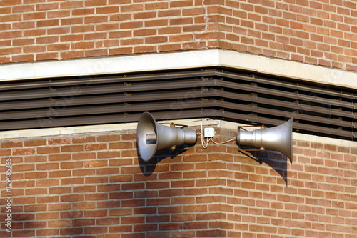 Lautsprecher an einem Schulgebäude