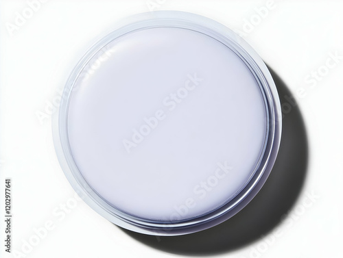 Lavender Cream in a Jar Sits on a White Surface casting a shadow.