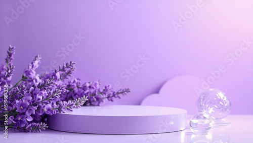 Lavender flowers and purple display platform