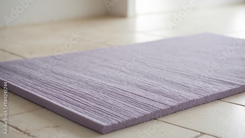 Lavender mat on light colored tiled flooring