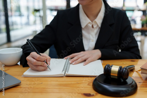 Lawyer business woman working or reading lawbook in office workplace for consultant lawyer concept
