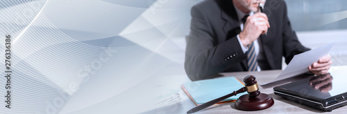 Lawyer reading legal document. panoramic banner
