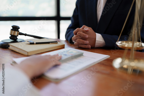 Lawyer Rejecting offer of black money in exchange for a permit in the deal. Concepts of corruption and anti bribery