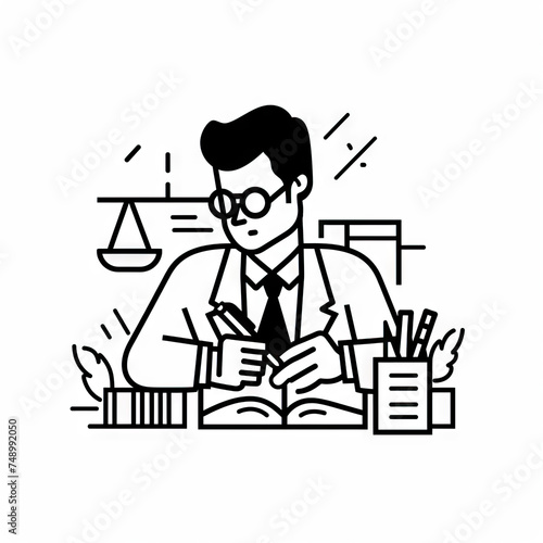 Lawyer Writing Legal Brief - Office. Vector Icon Illustration. Animal Nature Icon Concept Isolated Premium Vector.