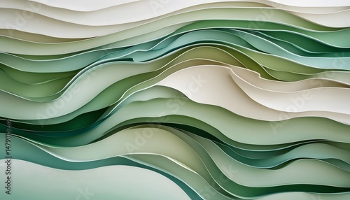 Layered, abstract design of soft, wavy shapes in pastel colors.