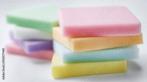 Layered colorful cleaning sponges set stacked with soft textures and vibrant hues.