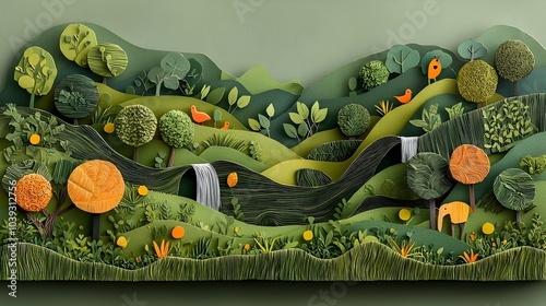 Layered Jungle with Paper Waterfalls Hidden Within Lush Tropical Foliage and Vines Serene and Tranquil Natural Landscape in a Verdant Rainforest Setting