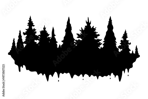 Layered Silhouette of Forest with Fog Effect, Mysterious Woodland Scene, Misty Forest Landscape, Transparent Background