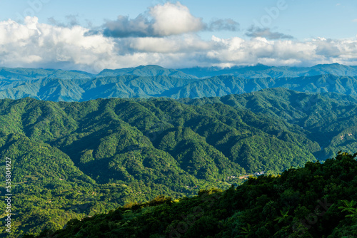 Layers of magnificent mountains and clear clouds background in Taiwan.