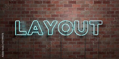 LAYOUT - fluorescent Neon tube Sign on brickwork - Front view - 3D rendered royalty free stock picture. Can be used for online banner ads and direct mailers..